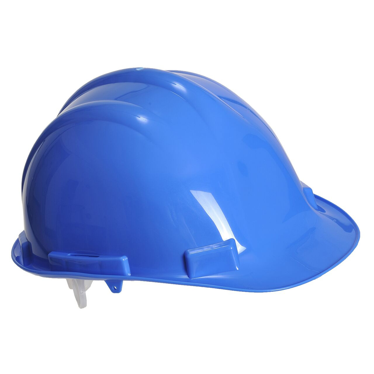 Elmetto in polipropilene ad alta densità, bardatura a 4 punti in plastica, regolazione della fibbia  55 – 62 cm, morbido frontalino anti sudore incluso.